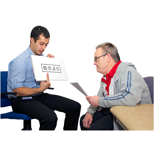 Speech and Language Therapists identify unmet communication needs, and establish the most appropriate communication method for each person. We develop bespoke resources to support the individual’s communication requirements.
