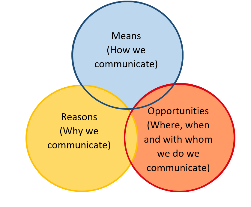 • The Means, Reasons and Opportunities model outlines how, when and why we communicate. This model can help