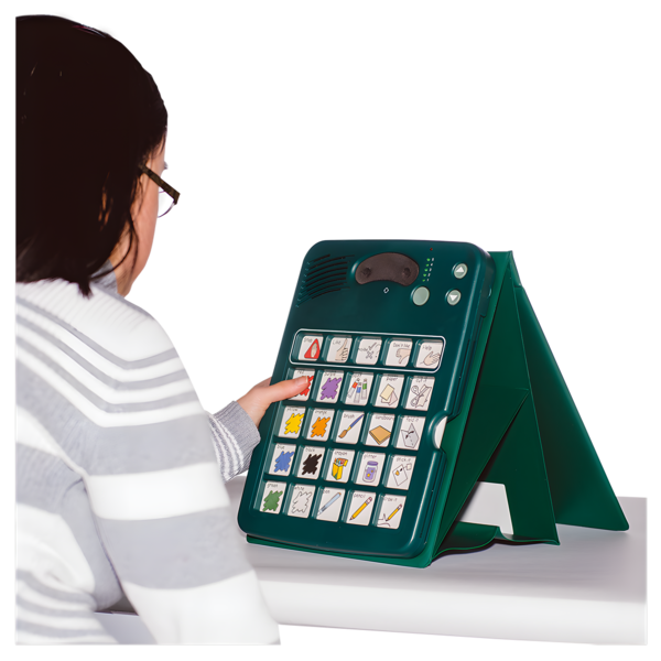 Some AAC systems are electronic and need power from a battery or mains supply. These devices use advanced hardware and software that help people communicate by generating speech. Some high tech AAC systems include: